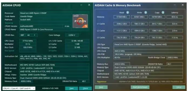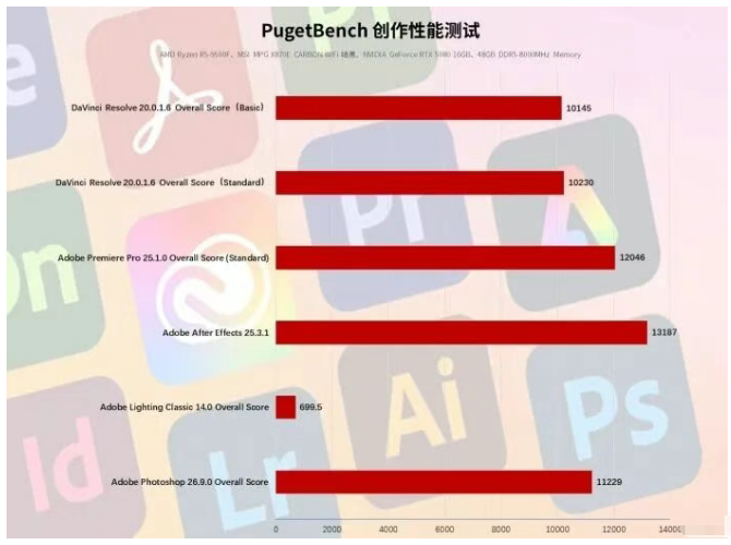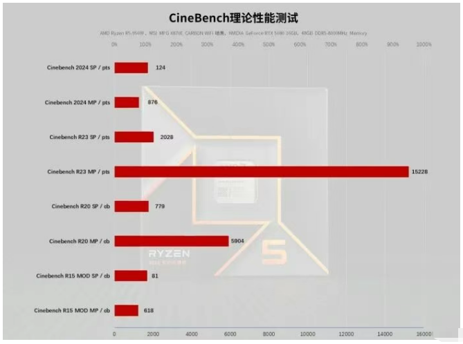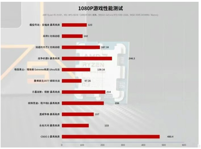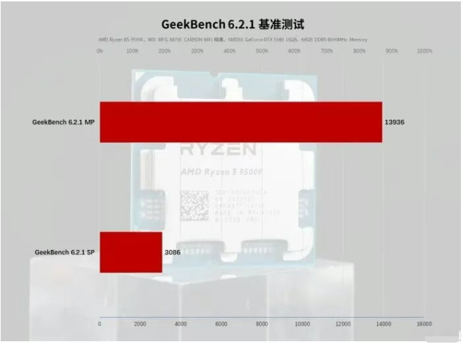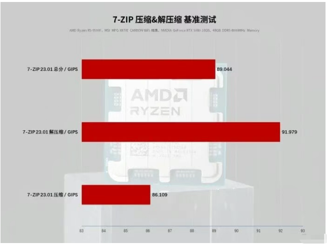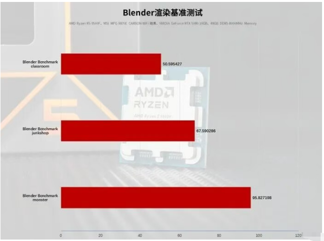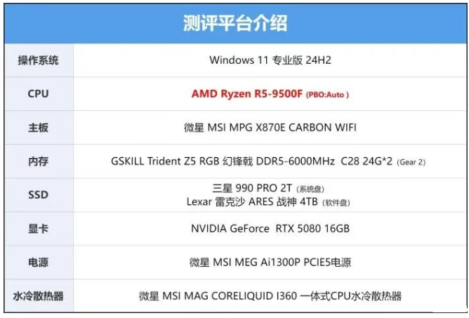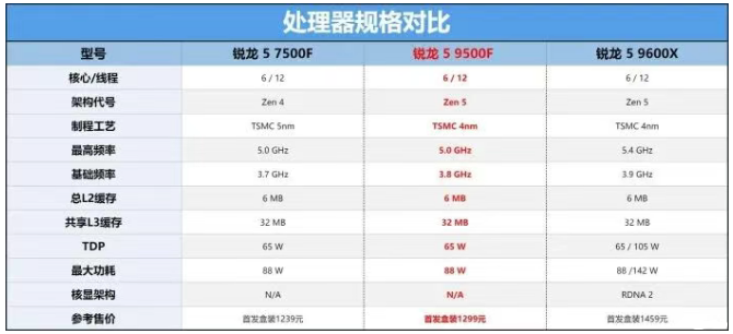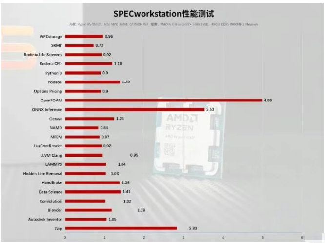 自AMD銳龍5 7500F問世以來,這款搭載Zen 4架構的入門級游戲處理器以其卓越的性價比和不俗的性能表現,成為不少游戲玩家和低預算用戶的心頭好。不過,隨著AMD全新Zen 5架構的發布,銳龍9000系列處理器開始嶄露頭角,逐步接替銳龍7000系列的市場地位。 銳龍5 7500F處理器也迎來了它的繼任者——銳龍5 9500F。新處理器不僅延續了前代在游戲性能和性價比上的優勢,還融入了Zen 5架構的最新技術突破,為追求高性能與經濟性的用戶帶來了更激動人心的選擇。下面就跟隨我們的鏡頭一起看看銳龍5 9500F表現到底如何吧~ 銳龍5 9500F處理器介紹 首先讓我們一起看看銳龍5 9500F的外包裝,它并不像9700X、9800X3D等處理器那么“環保”,其包裝盒體積要大上一圈,原因在于其包裝內多了一個散熱器。 包裝盒的正中間有鏤空窗口,可以很清晰的看到處理器上的絲印,四周則是經典的AMD設計,特別是大大的銳龍5字樣,非常醒目。 拆開包裝,內部除了有處理器本體之外,還有一個純黑色的 Wraith Stealth 幽靈散熱器,理論上省去了玩家購買散熱器的預算。 熟悉AMD的玩家應該對這款散熱器不陌生了,它可以說是Wraith系列中最輕量化的散熱器了,適合日常使用和輕度負載場景。 處理器則被封印在一個塑料盒子當中,保護性MAX,并且AMD還貼心的配備了一張銳龍5的貼紙。 接著來看它的外觀造型,和其他銳龍9000沒有任何區別,只是CPU頂蓋上的光刻型號有不同。因此也可以兼容現有的 B650 和 X670E 主板,對老用戶升級來說相當厚道。 背面也與其他銳龍9000系處理器無異,都是AM5接口,因此實現更豐富的功能定義,包括支持最新的DDR5內存、PCIe 5.0總線,原生支持170W的處理器功耗,甚至支持最高230W功率輸出。 規格上,銳龍5 9500F為chiplet小芯片設計,包括一個4nm的CCD和一個5nm的IOD。其中CCD面積為70mm2,擁有86億個晶體管,而IOD的面積則是122mm2,包含34億個晶體管。 采用6核心12線程設計,基礎頻率為3.8GHz,相比上代7500F小有提升,加速頻率則為5.0GHz,并且還有6MB二級緩存和32MB三級緩存。TDP則維持在65W,不過在架構與制程工藝上對比上代還是有進步的,換用了Zen5架構以及TSMC 4nm制程工藝。 而對比同代的大哥銳龍 5 9600X來說,規格也非常接近,銳龍5 9500F的最大頻率比銳龍5 9600X低了400MHz,基礎頻率則低了100MHz,還少了個核顯,除此之外,兩款處理器別無二致。 詳細的規格參數可以參考下面的表格: 測試平臺介紹 在開始評測前,照例還是給大家介紹一下本次的測試平臺。CPU當然是本期的主角銳龍5 9500F,主板則是來自微星的MPG X870E CARBON WIFI 暗黑主板。內存為G.Skill的幻鋒戟Z5 RGB DDR5,在這塊主板上能輕松達成DDR5-6000 C28的成績,并且我們這次選用的是24G×2的套條。至于顯卡我們選用的是RTX 5080,為的是避免CPU瓶頸。 基準性能測試 上機后,我們還是先在CPU-Z中看看平臺硬件信息,實測此時銳龍5 9500F單核跑分761.2,多核跑分5703.6。 我們還對CineBench 也進行了全面測試,涵蓋從早期的 CineBench R15 到如今更具挑戰性的 CineBench 2024 各個版本。實測不管是單核還是多核成績都很不錯,說明CPU性能釋放得非常充分而且十分穩定,即使用來從事專業的設計渲染用途也沒問題。 而在GeekBench6的基準測試里,銳龍5 9500F 多核達 13936 分、單核 3086 分,理論性能的 “底子” 還是十分扎實的。 至于7-Zip的壓縮也解壓縮測試我們也測了,銳龍 5 9500F總分達 89.044 GIPS,解壓縮性能突破 91.979 GIPS,壓縮也有 86.109 GIPS 的好成績。日常打包大文件、解壓游戲或素材包時,銳龍5 9500F還是能夠很好勝任,快速完成操作的。 緊接著我們還測試了3DMark的理論性能,無論是在DX11的Fire Strike項目,還是DX12的Time Spy項目,成績均相當優秀,特別是在Fire Strike中,銳龍5 9500F的成績都逼近3W分大關,為高畫質游戲、創意設計提供充足性能支撐。 而在3DMark的CPU Profile測試中,銳龍5 9500F的表現也是相當給力,實測它的單線程分數為1173,最大線程分數為6955,表現不錯,作為一款入門級的CPU,這個成績已經完全能夠滿足低預算游戲玩家的需求了。 接著我們再來測試一下銳龍5 9500F的內存兼容性與性能表現,這里我們直接強度拉滿,實測EXPO-8000MHz一次點亮,并且時序壓在C38-49-49-84,此時內存的讀取性能達到了57368MB/s,寫入則是83561MB/s,復制則為54790MB/s,延遲也優化至80ns,整體表現還是非常不錯的。 創作性能測試 下面,讓我們將目光轉向創作領域,這里我們將分成多個部分進行測試。 首先,銳龍 5 9500F 在 PugetBench 創作測試中展現出了不俗的實力,DaVinci Resolve 20.0.1.6 基礎與標準模式分別斬獲 10145、10230 分,Adobe Premiere Pro 25.1.0 更是突破 12046 分,視頻剪輯體驗可以說是流暢高效;After Effects 25.3.1則獲得了13187分,表現同樣出眾;至于Photoshop 26.9.0也達到了11229 分。從剪輯到特效,從調色到平面設計,銳龍5 9500F全流程創作毫無卡頓,妥妥的內容創作得力助手。 而面對壓力更大的Blender渲染基準測試,銳龍 5 9500F也不錯,classroom 場景 50.595 分、junkshop 場景 67.590 分,而 monster 場景更是沖到 95.827 分,多核渲染能力拉滿。無論是復雜 3D 模型的光影計算,還是大規模場景的細節渲染,都能快速高效完成。 最后我們還測試了工業領域的SPECworkstation 測試,銳龍 5 9500F 一樣大放異彩,其中OpenFOAM 流體仿真 4.99 分、Zip 壓縮 2.83 分,數據科學、卷積計算等也穩定在 1.41、1.02 分,同時在 LLVM 編譯、LAMMPS 分子模擬等任務中表現均衡。從工程仿真到科學計算,從代碼編